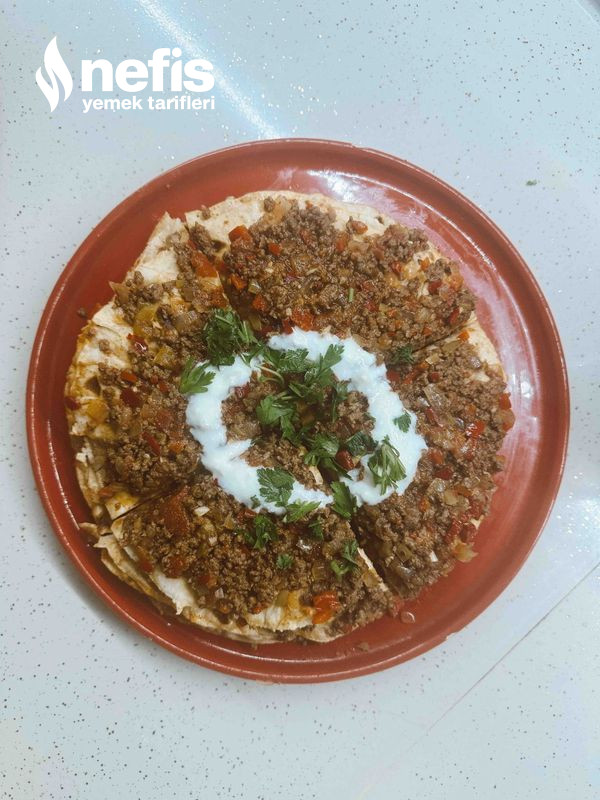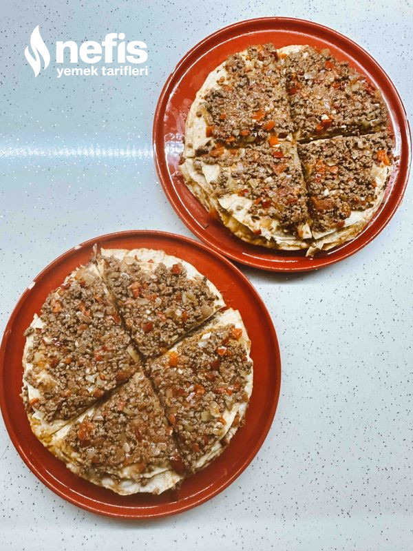 - Lavaşlarımızı bu biçimde ortalarına kıymalı harç koyarak üst üste yerleştirelim.
