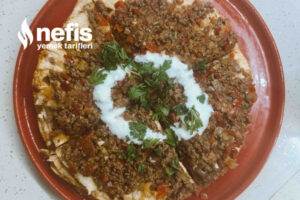 - Lavaşlarımızı bu biçimde ortalarına kıymalı harç koyarak üst üste yerleştirelim.
