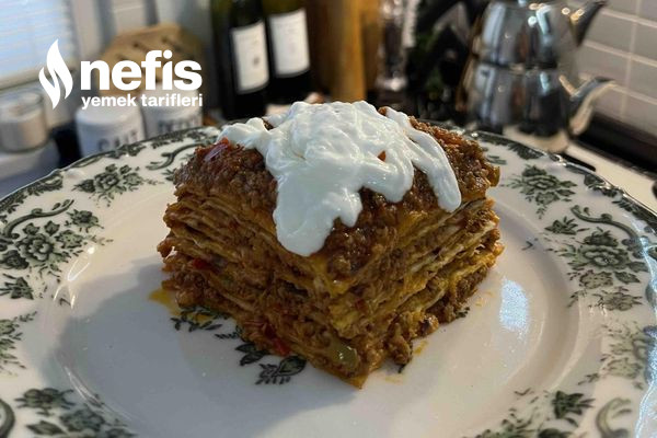- Lavaşlarımızı dörde katlayarak uçta kalan kısımlarını kıymalı sosa batıralım ve tabağa yerleştirelim.
