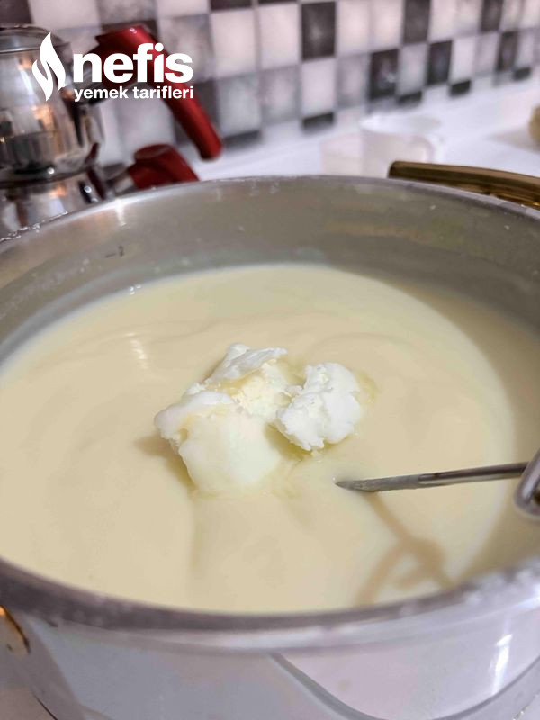- Tamamen soğuyan kremayı bilendir ile pürüzsüz hale gelinceye kadar çırpalım ne kadar çırparsanız kremanız o kadar hoş olacaktır. Ve krema hazır.
