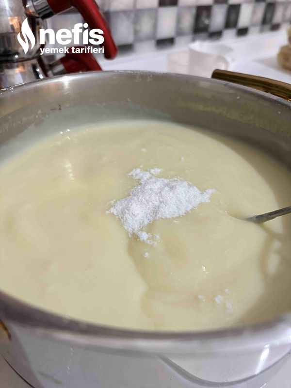 - Pürüzsüz bir krema elde etmeye dikkat edelim. Hazır olan kremamızı soğumaya alalım.
