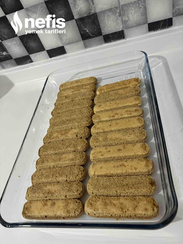 - 2 su bardağı kadar sütlü kahveye yapalım (kahve dilediğinizi kullanabilirsiniz granül, latte, espresso. ) kedi lisanı bisküvilerini kahveye batırıp borcama dizelim.