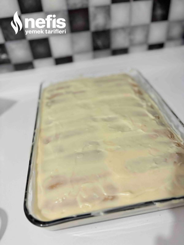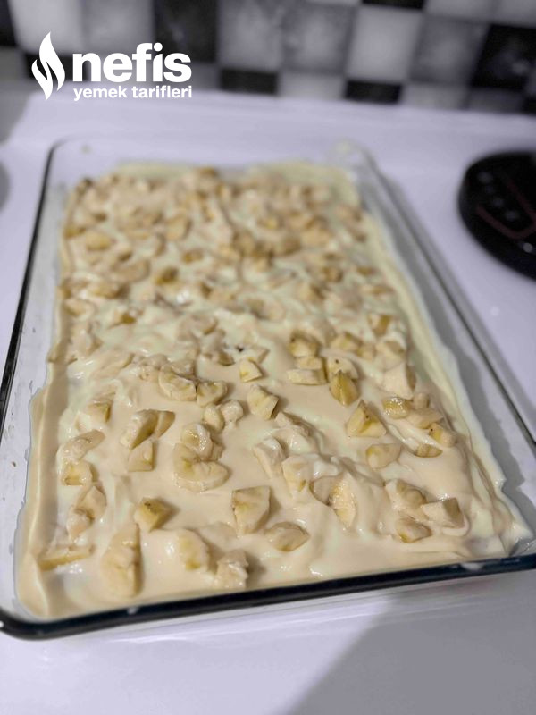 - İlk dizdiğimiz kedi dillinin üzerine kremanın yarısını sıvayalım kremanın üzerine muzları serpelim tekrar 2. Paket kedi lisanını kahve ile ıslatıp üzerine dizelim ve kalan kremayı da üzerine dökelim ve her yere eşit olacak biçimde sıvayalım.