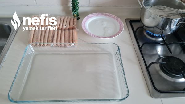 - Krema pişirken büyük dikdörtgen borcama kedi lisanlarını bi tabakta süt ile ıslatıp diziyoruz.
