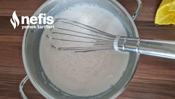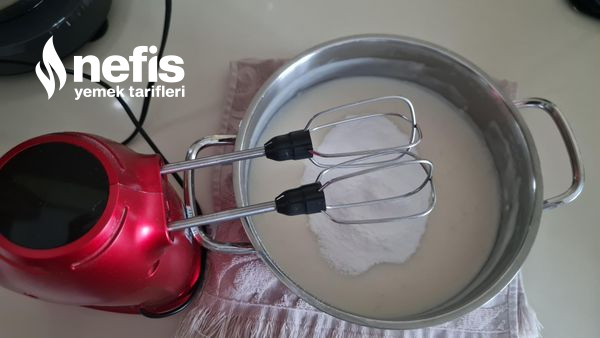 - Kaynadıktan sonra ocaktan alıp krem santiyi ekleyip çırpıyoruz.