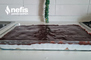 - Bi tencerede çikolata sosunu pişirip hafif ılıdıktan sonra kremanın üstüne döküyoruz, tatlı soğuduktan sonra dolaba koyuyoruz en az 4 saat dolapta dinlendiriyoruz.