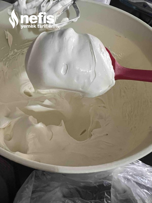 - Ilıdığından emin olunca kremamızın içine ekleyip tekrar yüksek evrede çırpıyoruz.