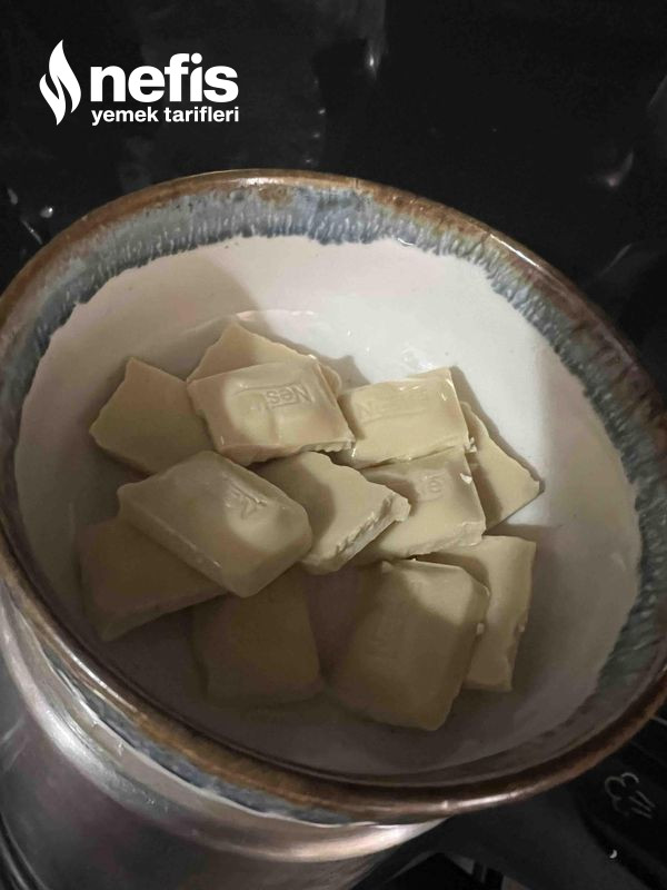 - 120 gram beyaz çikolata ( 1 yemek kaşı sıvı yağ ile benmaride erit)