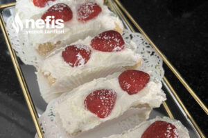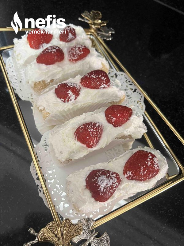 - Üzerlerine tekrar krema sıkıp çilek ile süslüyoruz.