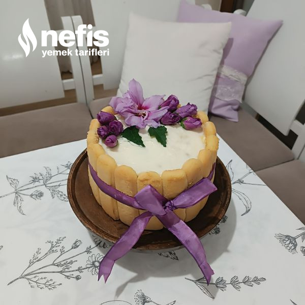 - Son dokunuş kalan kremayı en üste yayın ve dilediğiniz halde süsleyin. Afiyet olsun🌷💜.