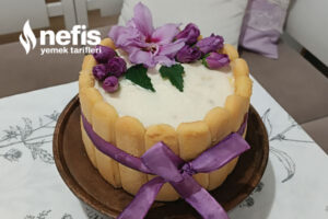 - Son dokunuş kalan kremayı en üste yayın ve dilediğiniz halde süsleyin. Afiyet olsun🌷💜.
