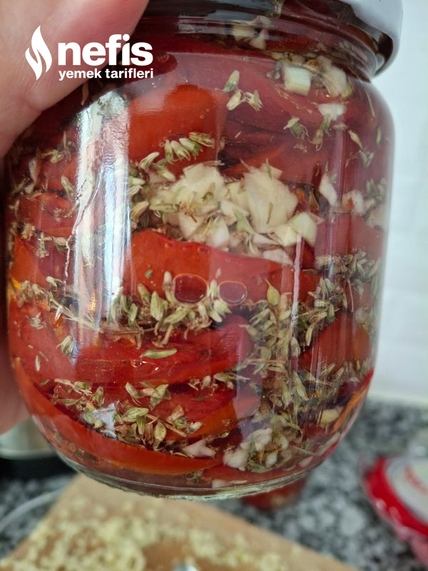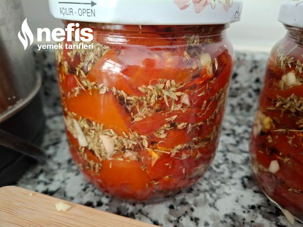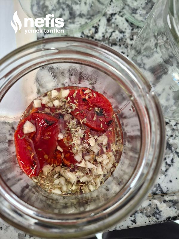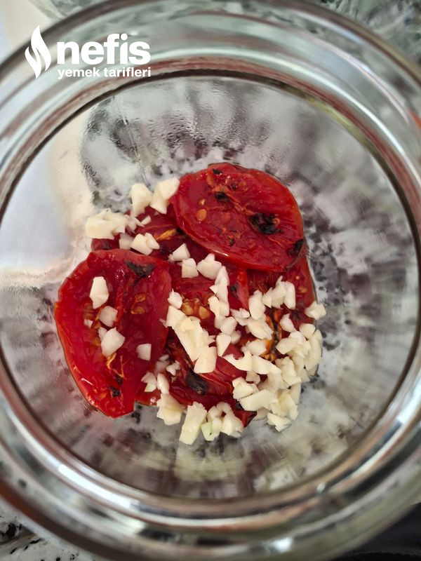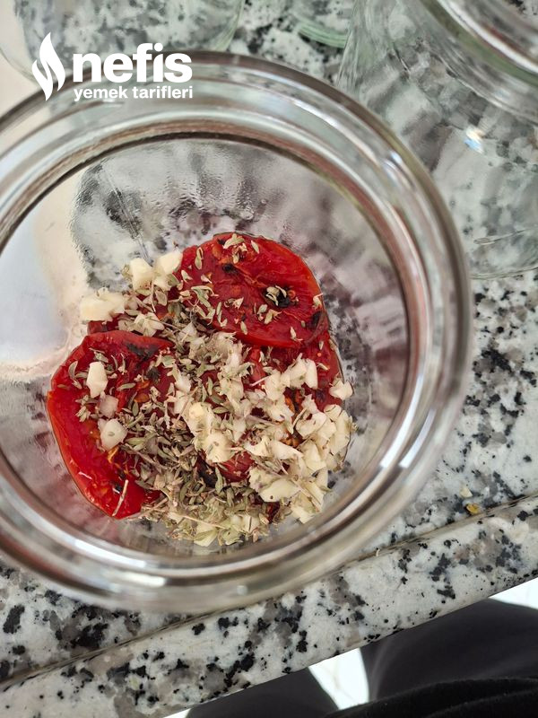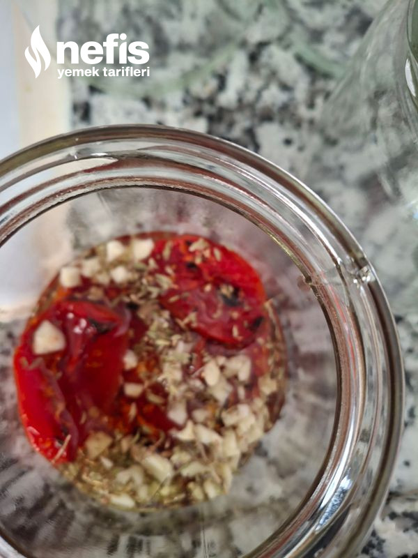 6. Fırından çıkardığınız domatesleri soğutmadan kavanozlara koyup,sarımsak, kekik ve yağı sıra ile koyup (kavanoz dolana kadar) ağzını sıkı bir formda kapatalım.