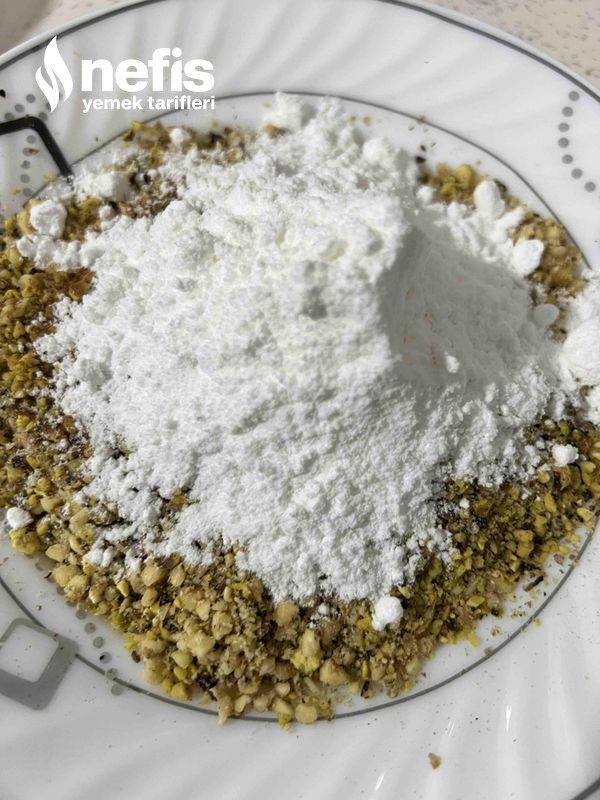 - Ceviz ve fıstığı çekilip pudra şekerini de ekleyim karıştıralım.