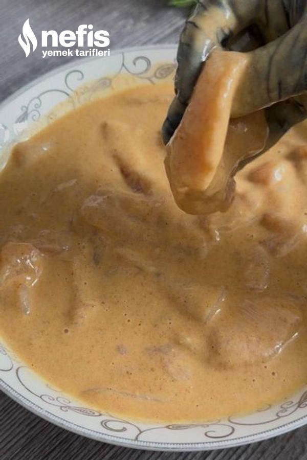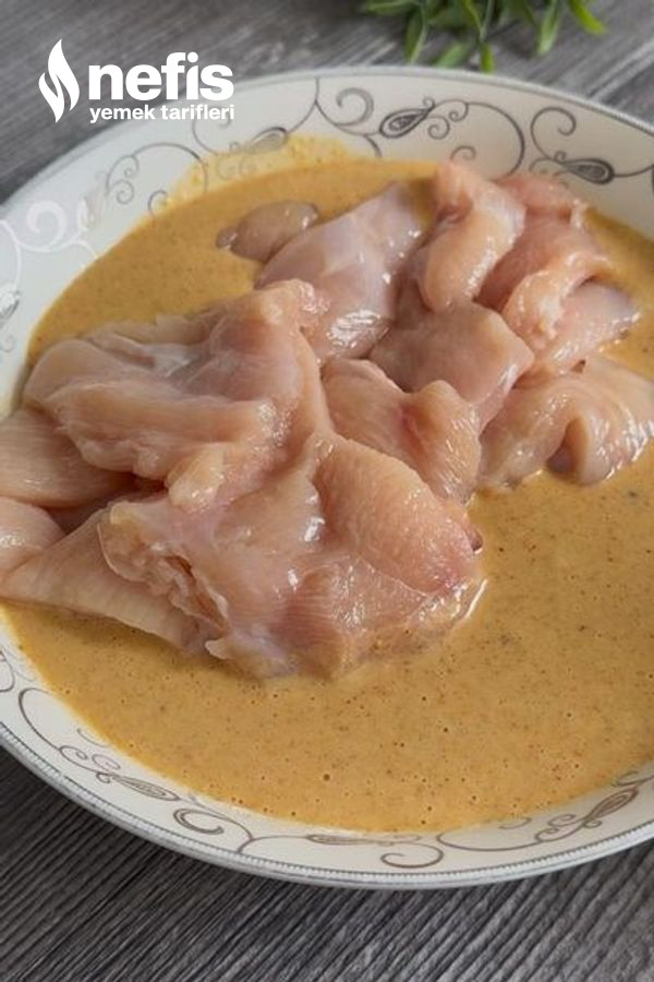 2. Tavuk göğsünü 1 parmak genişliğinde doğrayıp sosun içine ek edip güzelce karıştıralım.