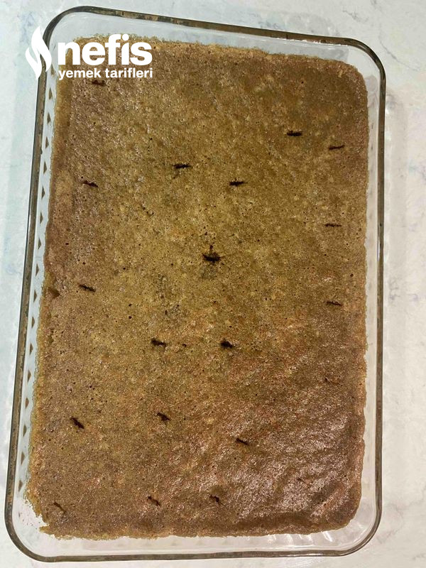 - Fırından çıkardığımız keke kürdan ile delikler açalım soğuyan şerbeti her yerine eşit biçimde dökelim ve kekimizi soğumaya bırakalım.