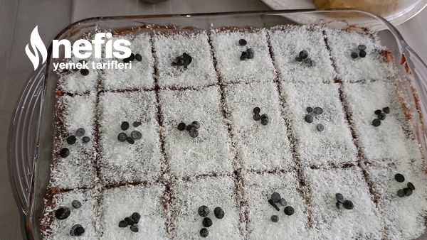 12. Son olarak üzerine çokça hindistan cevizi serptiğim tatlımızı en az 2-3 saat boyunca buzdolabında dinlenmeye bırakalım.