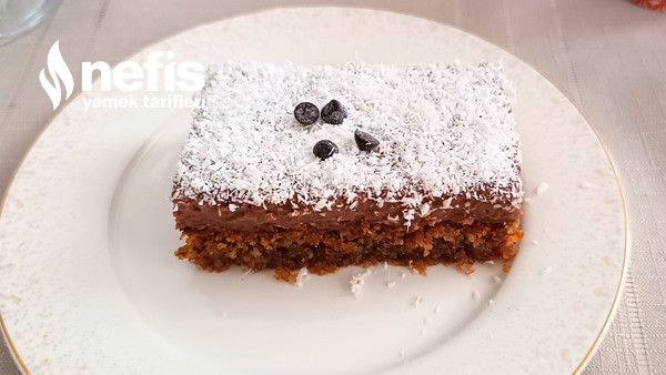 5. Yarım su bardağı sıvı yağ, 1 su bardağı galeta unu, 1 su bardağı hindistan cevizi, 1 su bardağı dövülmüş ceviz ve 1 paket kabartma tozunu ekleyerek tekrar mikserle çırpalım.