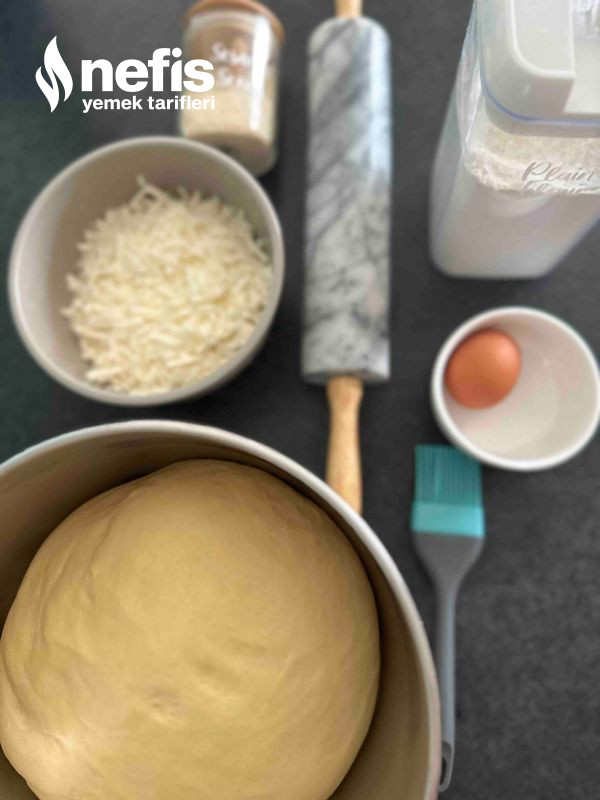 3. Hamuru top yap, hafif un serpilmiş yağlı bir kaba koy. Üzerini kapat, 30 dakika mayalanmaya bırak.