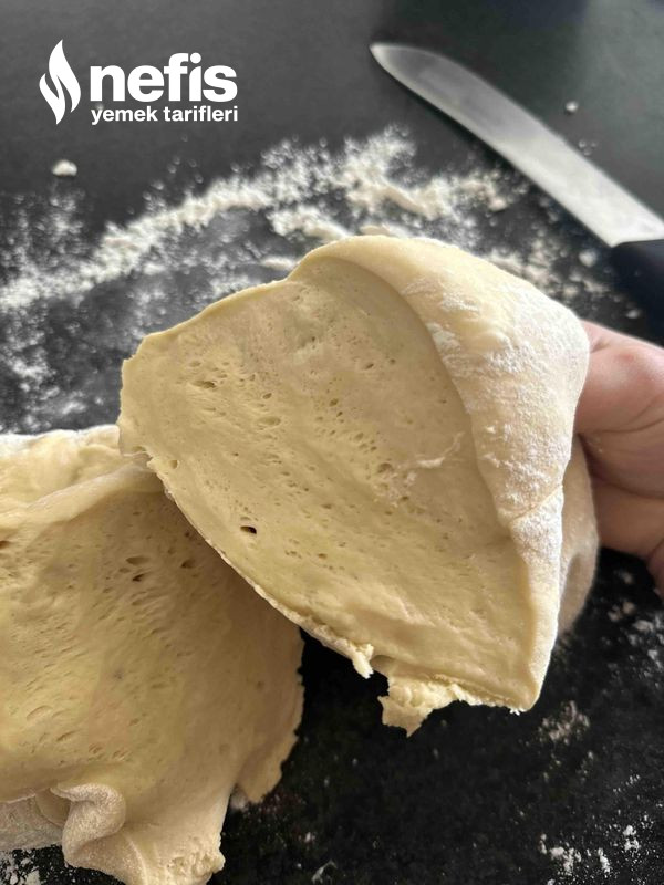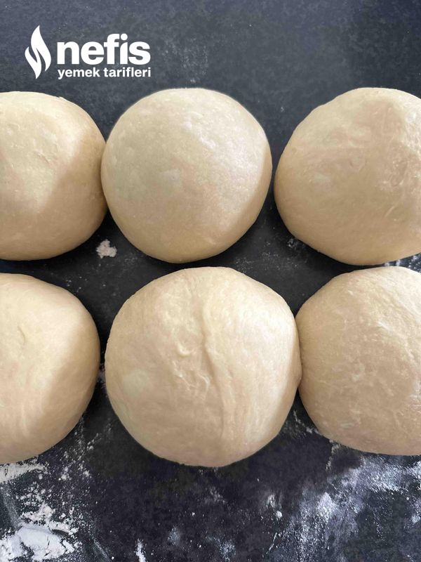 6. Hamuru unlanmış tezgaha al, hafif yoğur. 6 eşit modüle böl, her birini top yap.