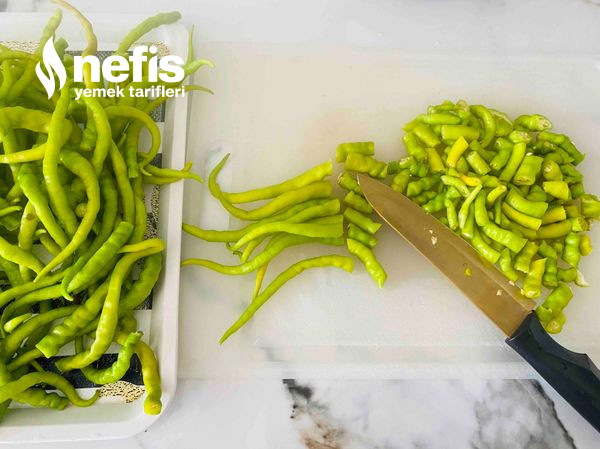 - Kıl biberlerin baş sap kısımlarını ayıklayıp doğrayalım.