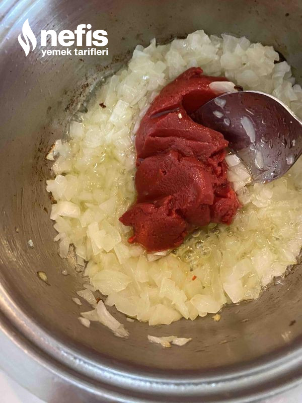 - Daha sonra başka yerde soğanları sıvı yağ ile soteleyelim ve salçasını baharatları da koyup ocaktan alalım.