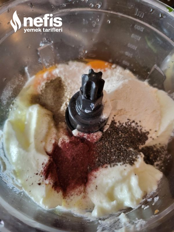 3. Yoğurt, baharatlar, yumurta ve un bir kapta karışıtırılır.
