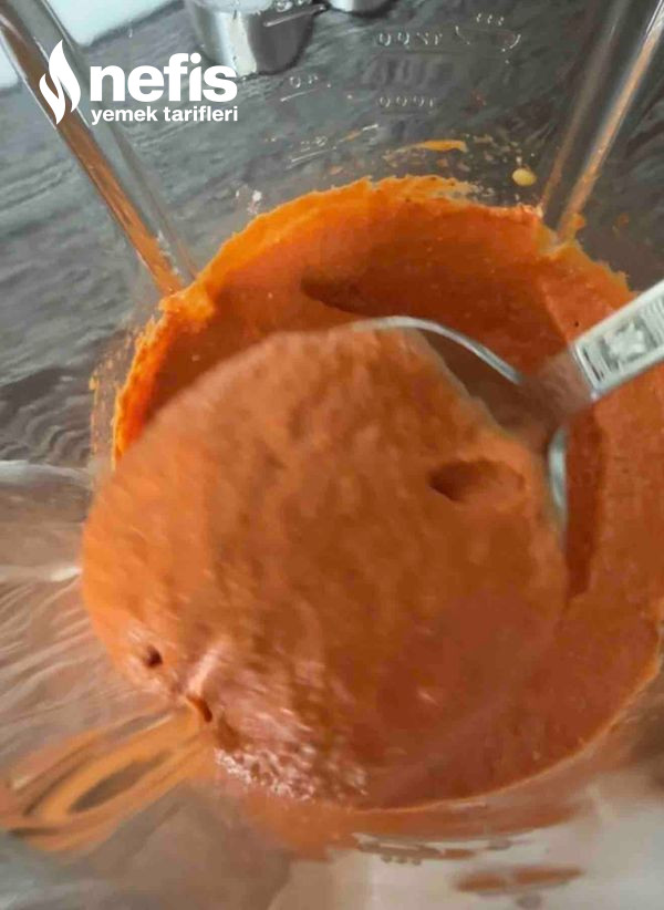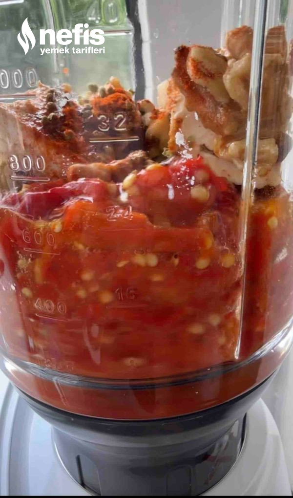 - İlk olarak biber ve sarımsağı fırında közleyelim. Akabinde biberlerin kabuğunu soyup, başka materyallerle birlikte mutfak robotunda çekelim.