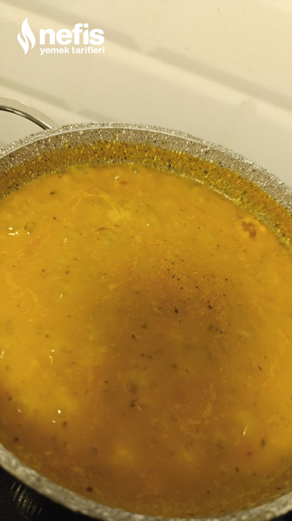 5. Pişen mercimeğin üzerine bu sosu ek ederek tekrar kaynatıyoruz.