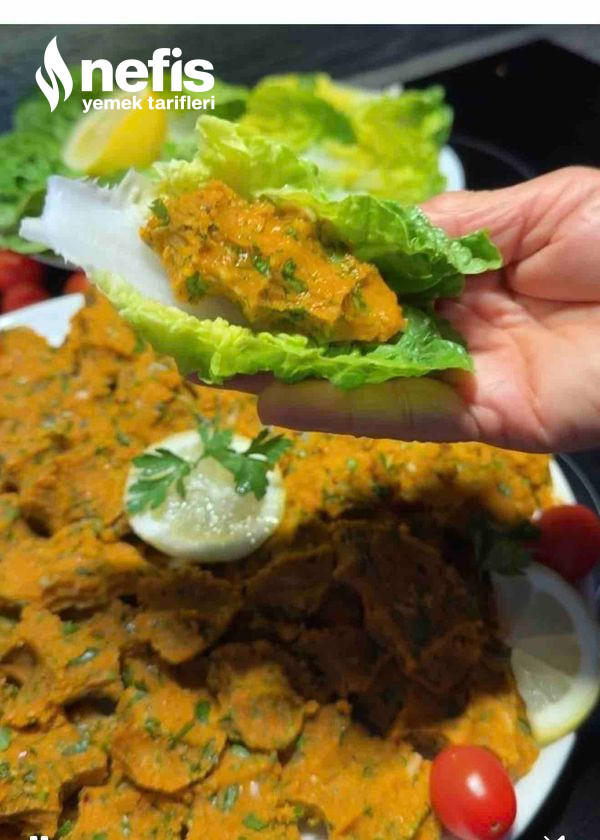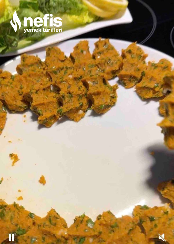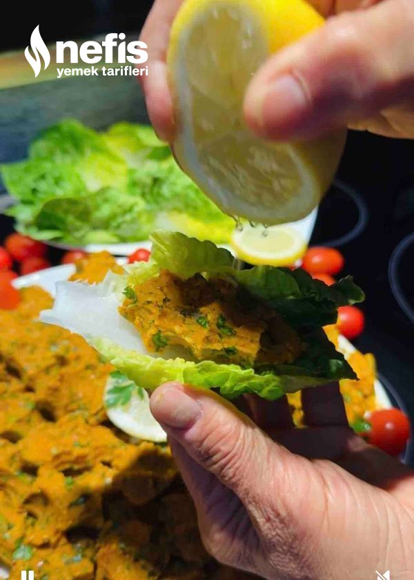 - Son olarak limon suyu ince kıyılmış yeşillikleri ekleyip tekrar yoğurup köfte formu verip, marul ve limon eşliğinde servis edebilirsiniz. Deneyeceklere afiyet olsun.