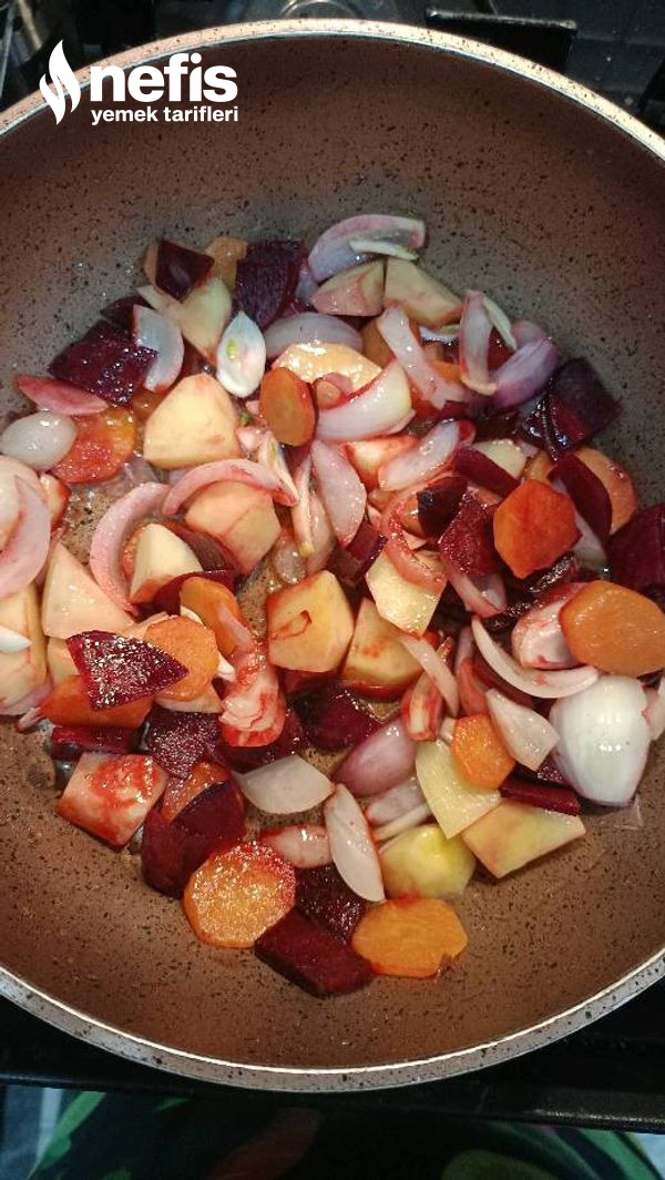 - Peşinden soğan, patates, pancar sarımsak ek edip 5 dk soteliyoruz.