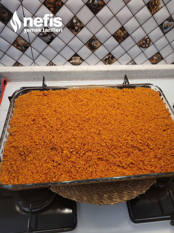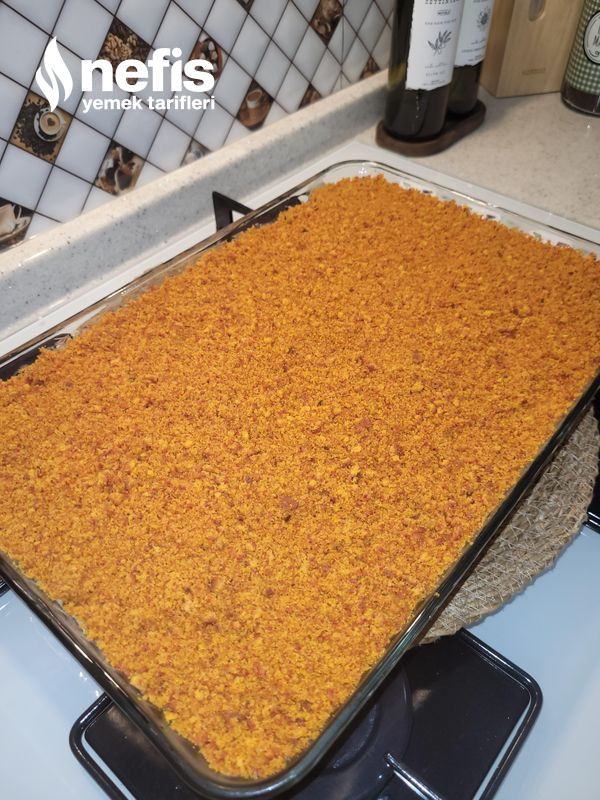 - Kek hamuru haline geldikten sonra yağladığımız tepsiye döküp 190 derece fırında 25 dakika pişirmeye bırakıyoruz.