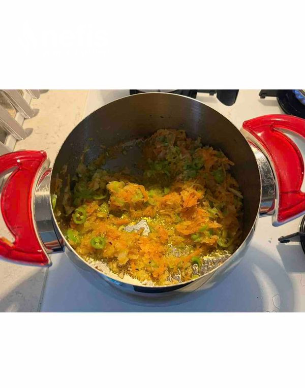 - Soğanımızı az yağda kavurup içine sarımsak biber ve havucu katıp bir kaç dakika çeviriyoruz. Tel şehriyemizi, didiklenmiş tavuk göğsümüzü ve suyunu ekleyip tuzunu, baharatlarını atıyoruz.