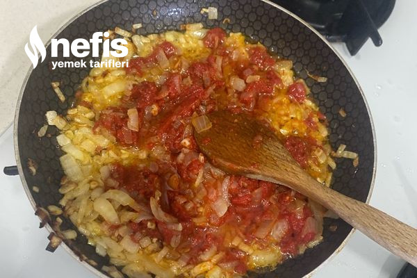2. Tavamıza sıvı yağ koyup ısınmış tavamıza soğan ek edip kavurup salça ek ediyoruz güzelce pişiriyoruz.