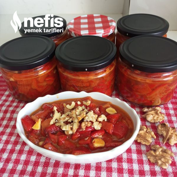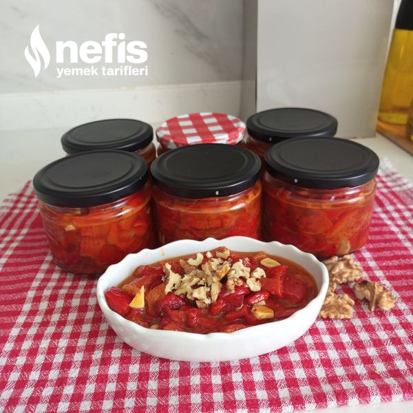 - Kışlık kahvaltılık kırmızı biberler hazır servis ederken üzerine iri kıyılmış ceviz serpiştirelim deneyeceklere kolay gelsin afiyet olsun.