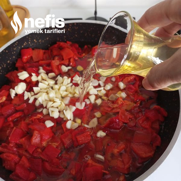 - Biberleri çıkan suyu ile birlikte tencereye alalım üzerine bir çay bardağı zeytinyağı 1 çay bardağı sirke 1 çay bardağı su ve doğranmış sarımsakları ek edin.