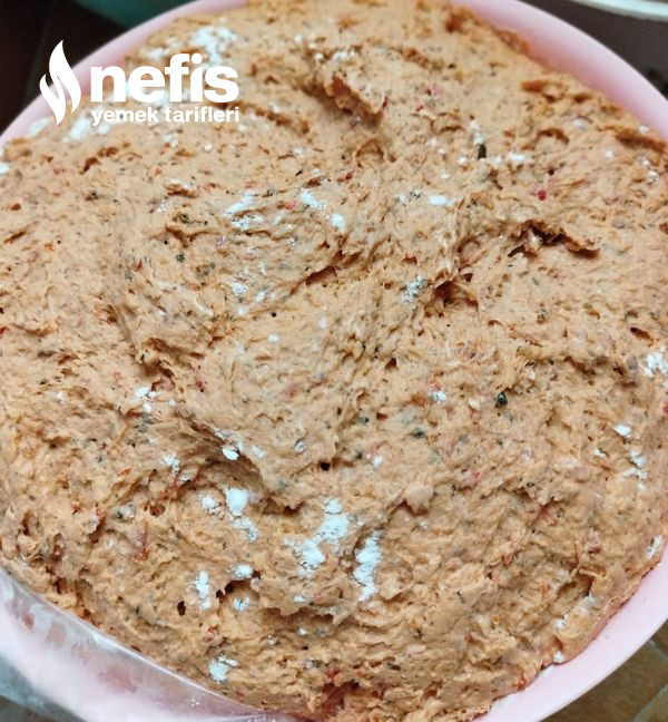4. Daha sonra yoğurma kabına alıp üzerine yoğurt,maya, salça,baharatlar ve tuzu ekleyelim.