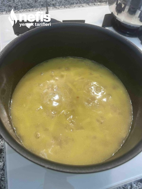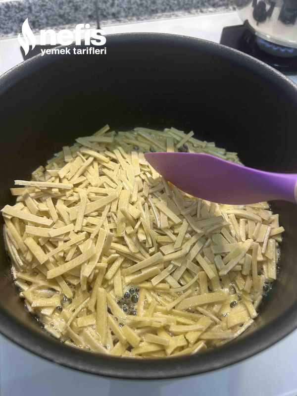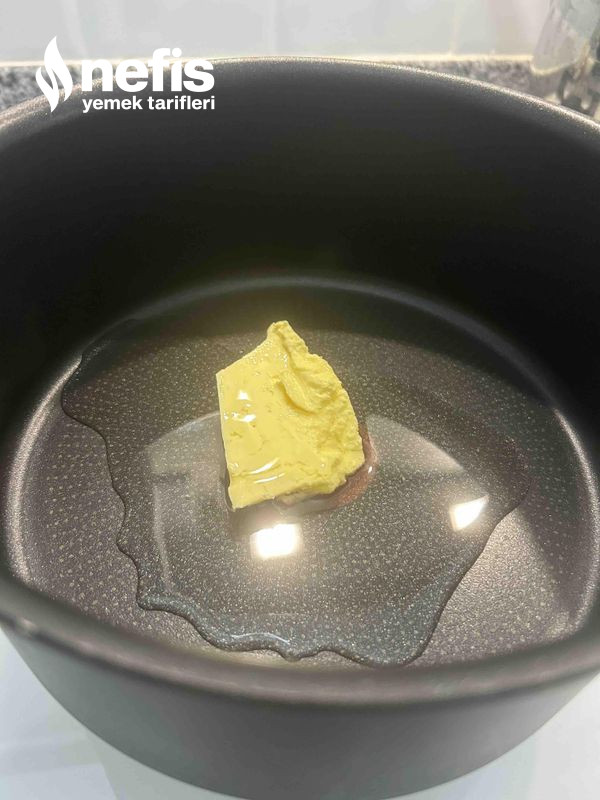 1. Tereyağ ve sıvı yağı tencereye koyup eritmeye başlıyoruz, eriyen yağın içine erişte makarnayı döküp biraz kavuruyoruz.