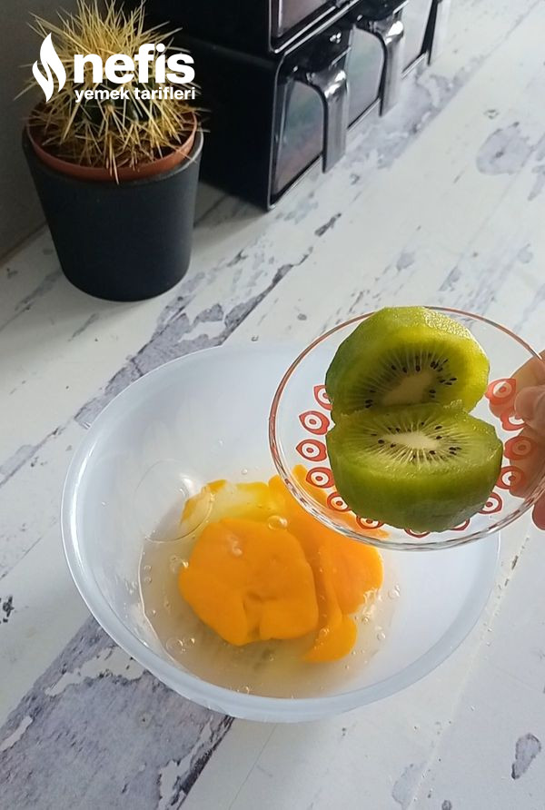 - Yumurtaları ve kiviyi bir makine kullanarak ezin.