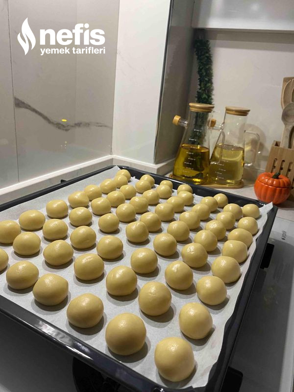 - Daha sonra minik minik haller verelim evvelden ısıtılmış 170-180 derece fırında 20-25 dakika kurabiyeleri pişirelim.