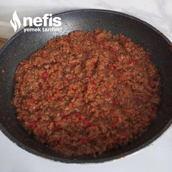 5. Daha sonra ocağın altını kısıp kıymaları ek edelim, topaklanmaması için kaşıkla eze eze karıştırarak pişirelim .