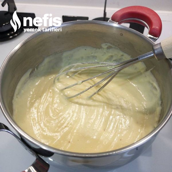 12. Azar azar süt eği yapıp karıştırmaya devam edelim.