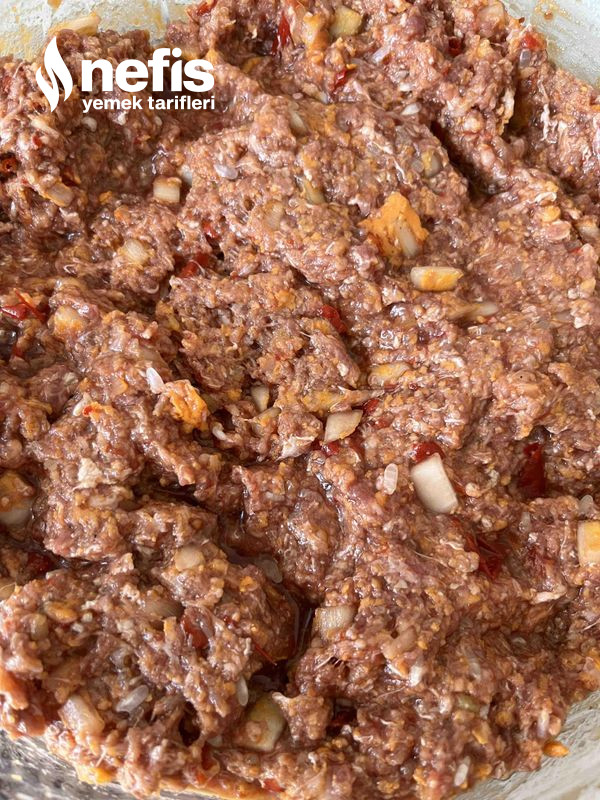 - Kıymamızı kabımıza alıyoruz. Soğanımızı doğruyoruz. Domatesimizi rendeliyoruz. Pirinç, maydanoz, tuz ve biberi koyup harcımızı yoğurmaya başlıyoruz.