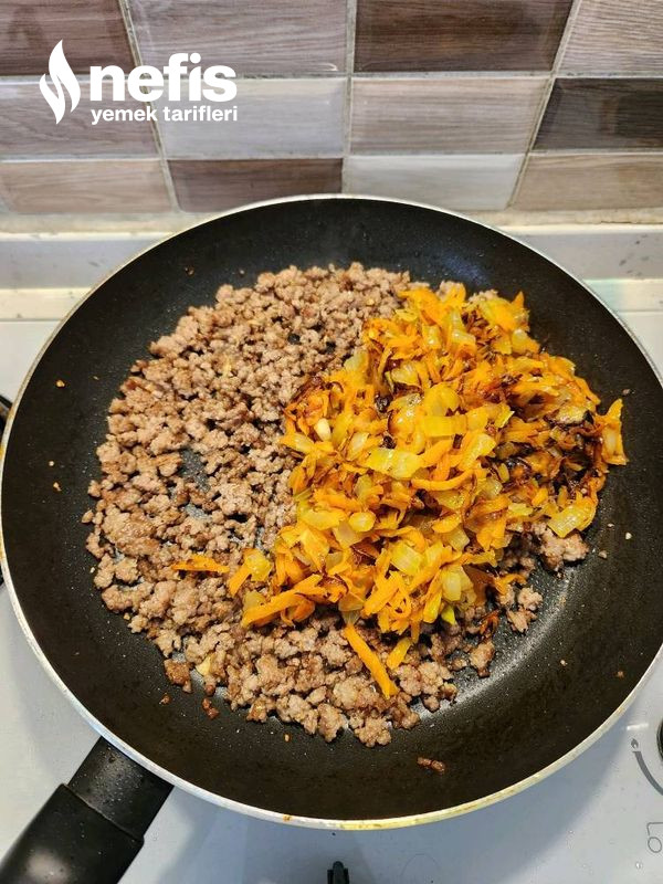 - Aynı tavaya kıyma da ek edililerek kavrulur.