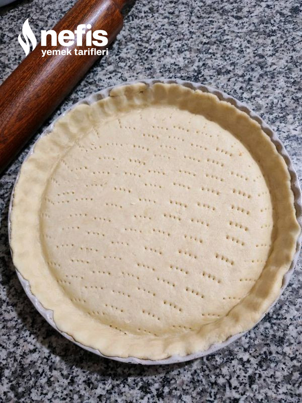 - Tart kalıbı büyüklüğünde açın. (ben biraz küçük açmışım ön pişirmede çekti).