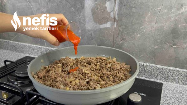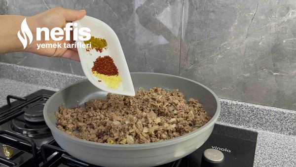 3. Tavaya zeytinyağını alın, soğanı kavurun. Akabinde kıyma ve sarımsağı ekleyip pişirin.