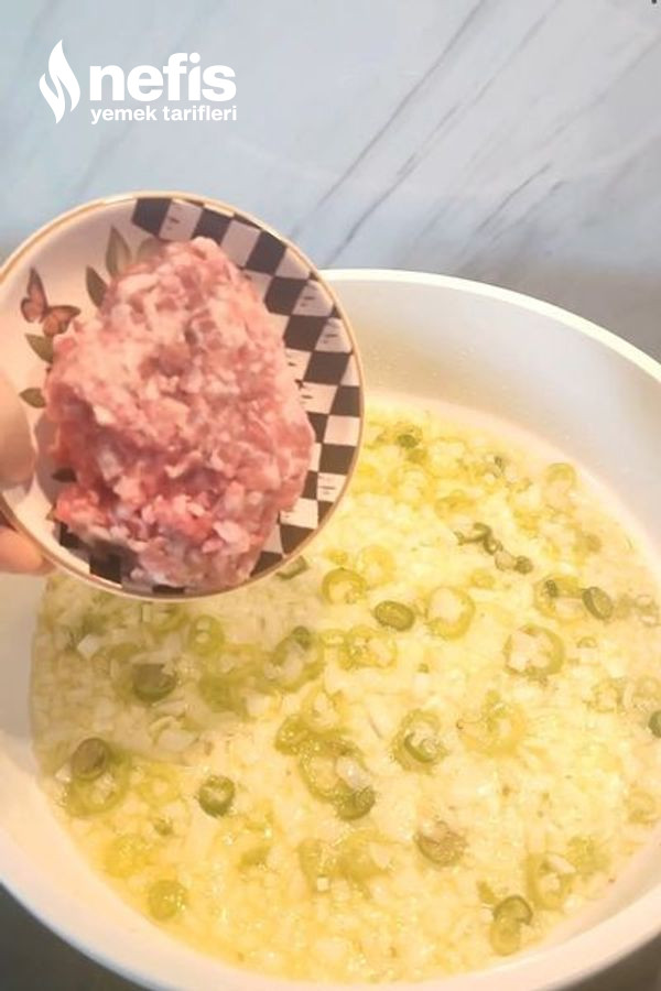 - Kıymayı ekleyip kavurun.