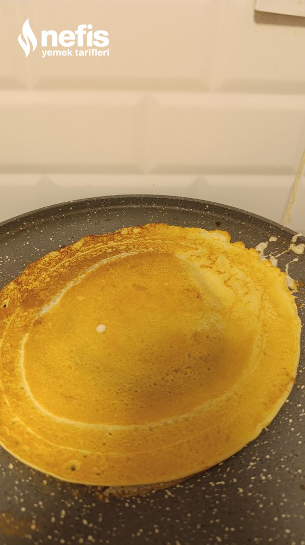 - Üzerine bir kepçe hamurdan döküp gerili önlü pişiriyoruz.