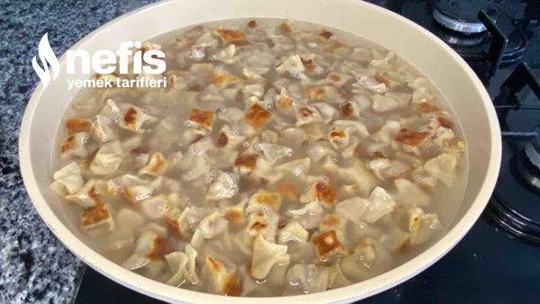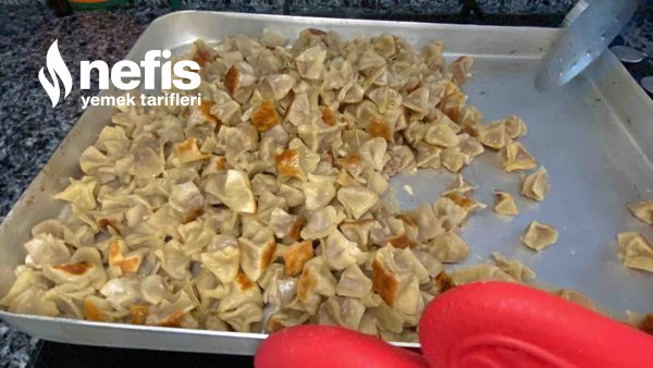 - Tepsiyi ocağın üzerine alıp denetimli halde çevire çevire mantıların altını kızartalım.