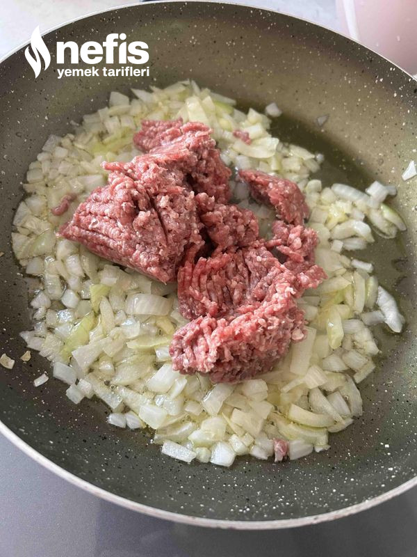 - İç harcımız için soğanı yemeklik doğrayalım, geniş bir tavaya alalım sıvı yağ ekleyelim. Pembeleştirmeye başlayalım, soğan hafif dirildiğini kaybederken kıymayı ekleyelim kavurmaya devam edelim. Tuz ve baharatlarını ekleyelim düzgünce kavrulduktan emin olduktan sonra iç harcımızı başka bir kaba soğuması için aktaralım.