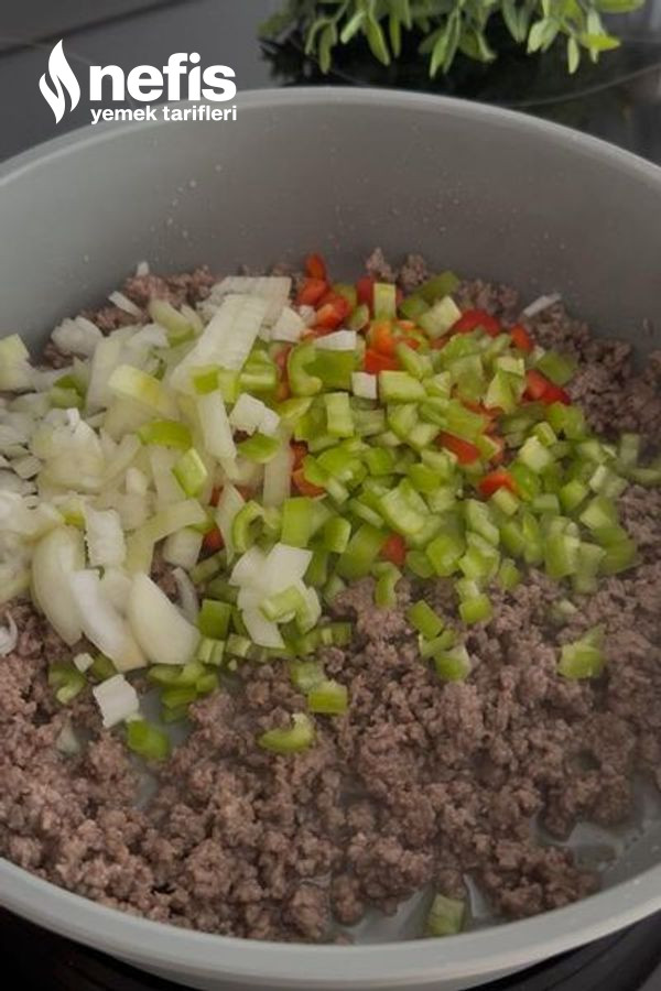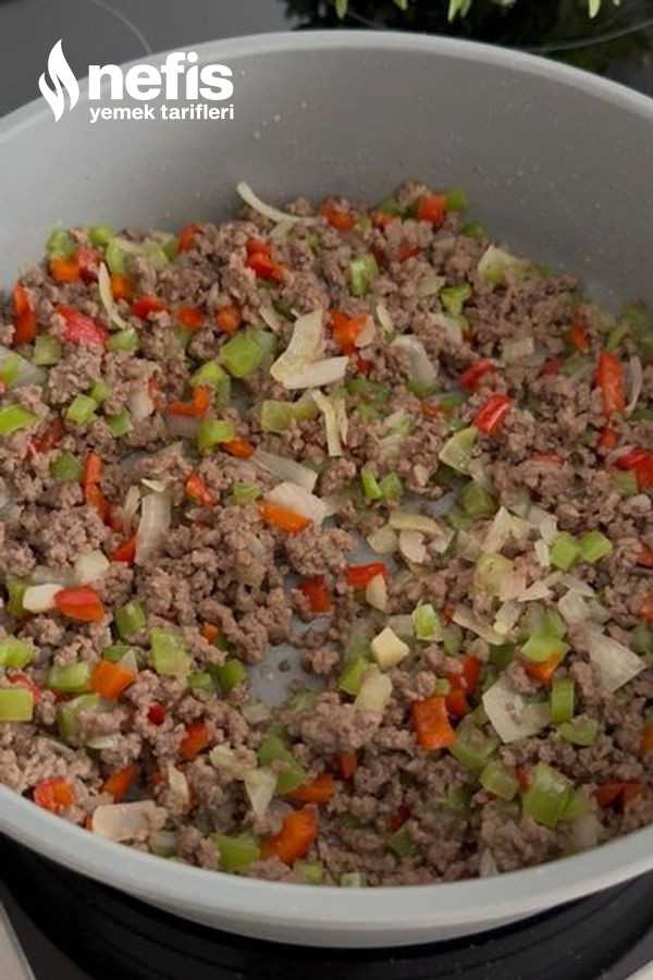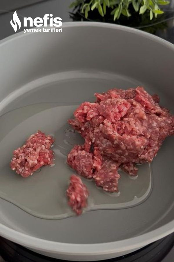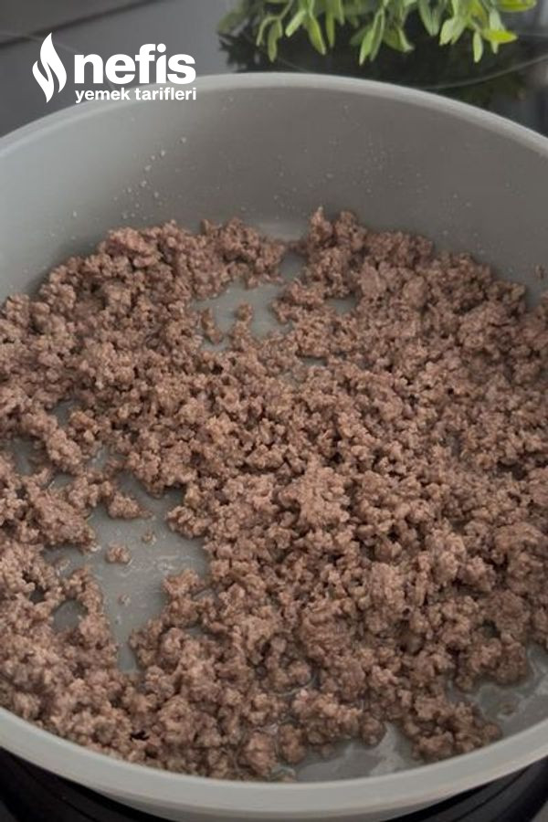 6. Diğer tarafta kıymayı bir tavaya alıp sıvı yağ ile kavuralım.